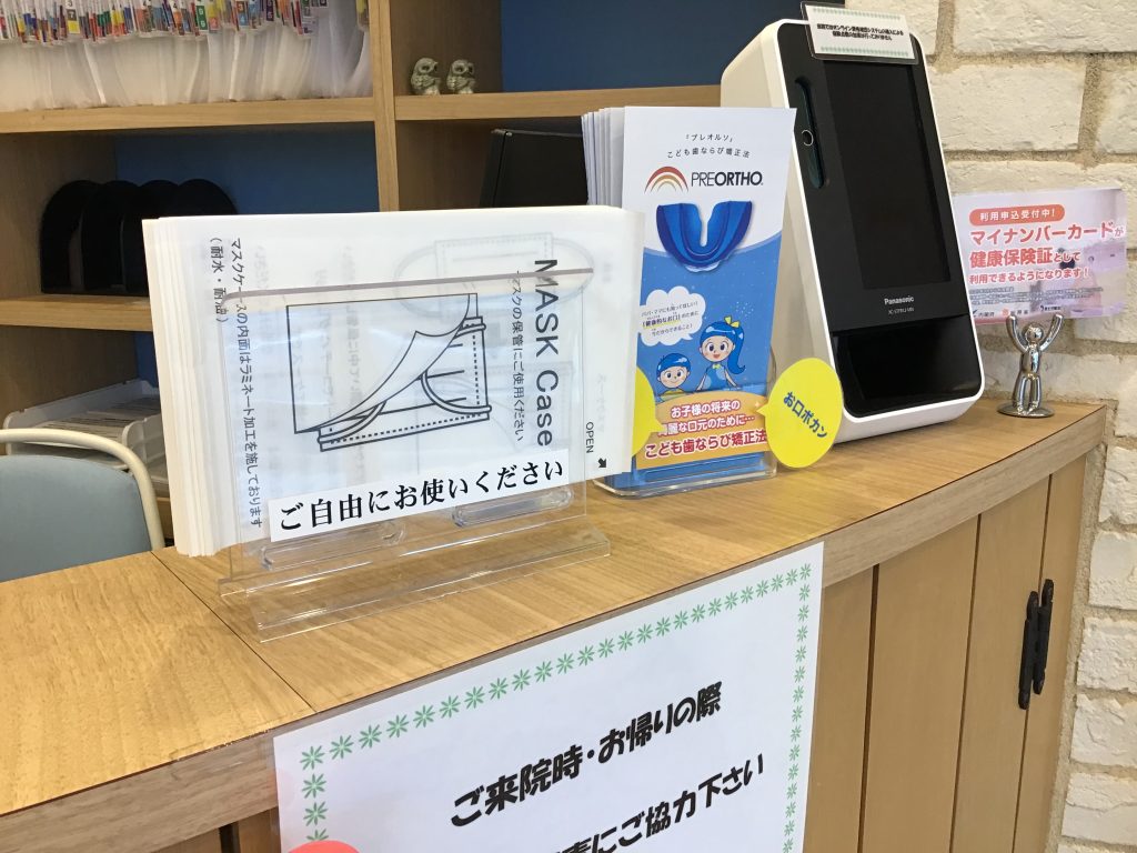 診療中にマスクを外すと紛失してしまったり、顎マスクをしてしまうとマスクが汚れてしまうので良かったら受付に置いてあるのでご自由にお使いください🌻